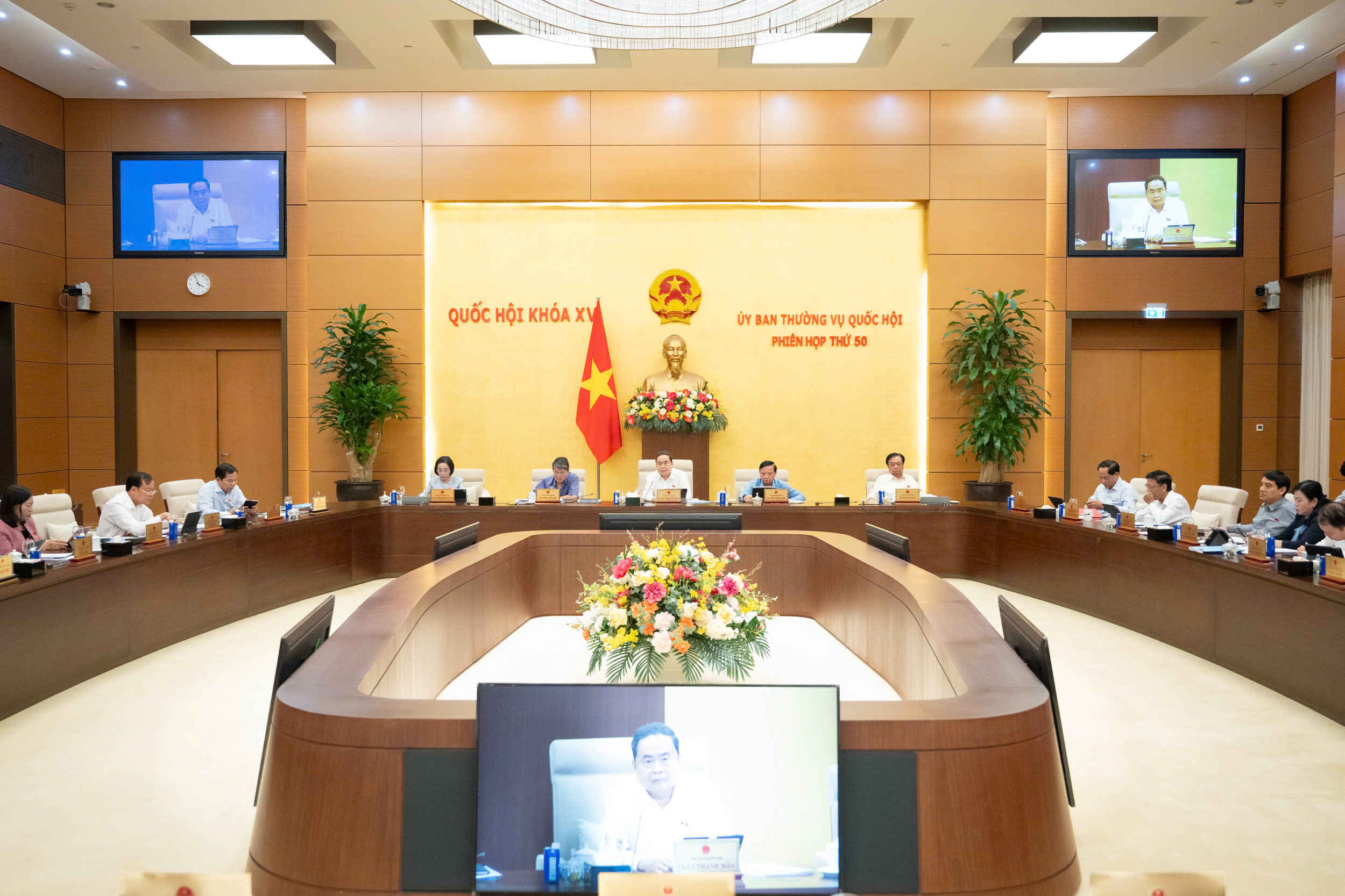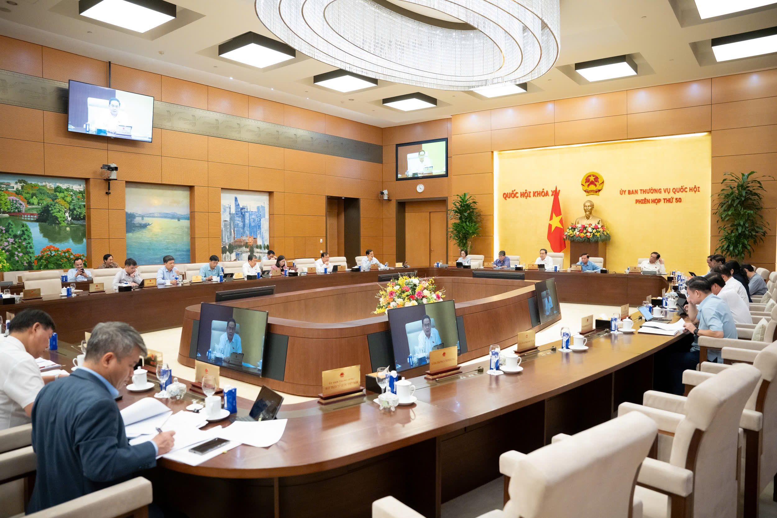 Chiều 14/10, tiếp tục Phiên họp thứ 50 của Ủy ban Thường vụ Quốc hội, dưới sự chủ trì của Chủ tịch Quốc hội Trần Thanh Mẫn, Ủy ban Thường vụ Quốc hội cho ý kiến vào dự án Luật sửa đổi, bổ sung một số điều của 15 Luật trong lĩnh vực nông nghiệp và môi trường. Phó Chủ tịch Quốc hội Lê Minh Hoan điều hành nội dung thảo luận.