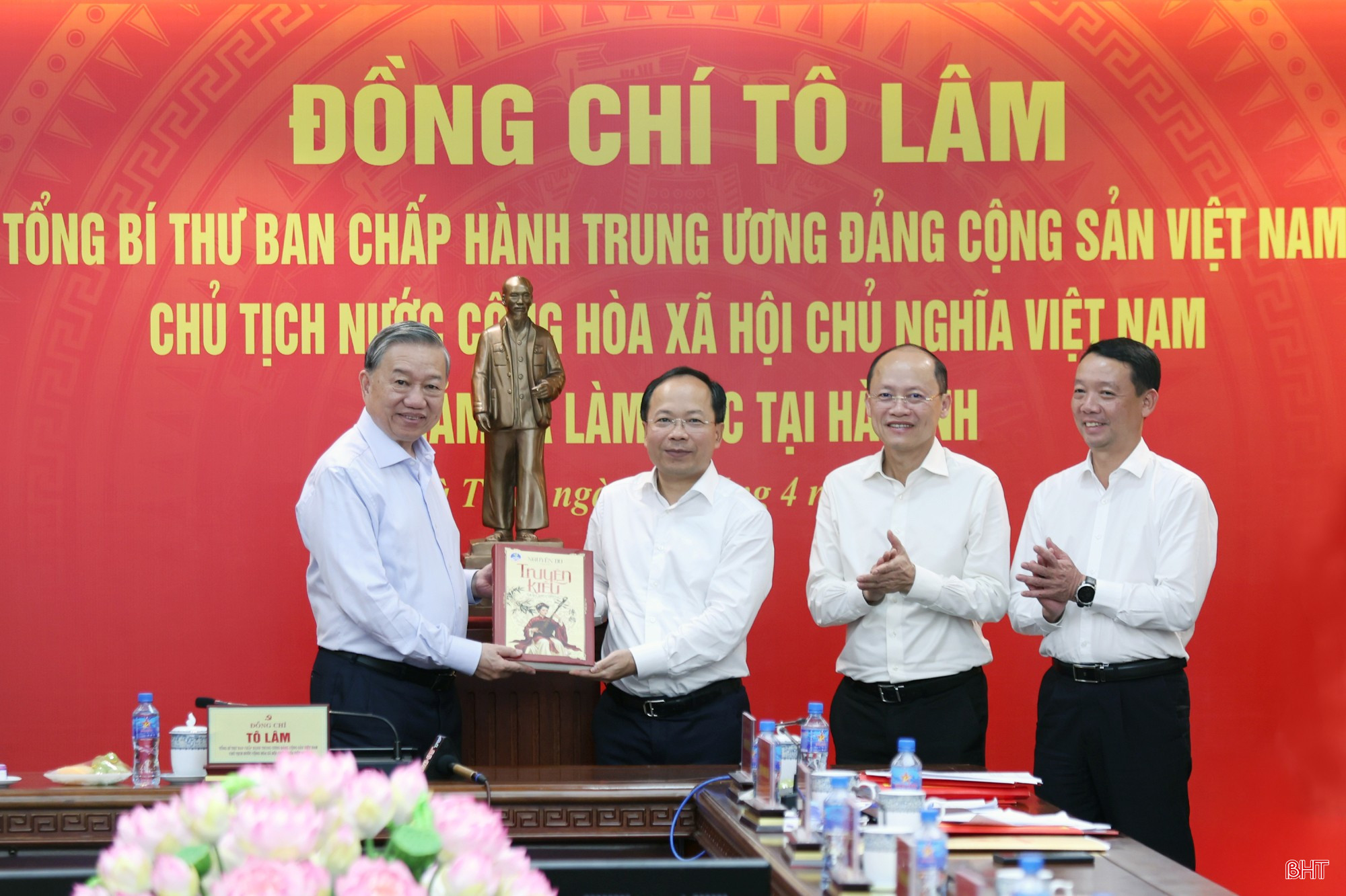Tiếp tục chương trình công tác tại Hà Tĩnh, chiều 21/4, đồng chí Tô Lâm - Tổng Bí thư, Chủ tịch nước đã có buổi làm việc với Ban Thường vụ Tỉnh ủy Hà Tĩnh về tình hình, kết quả triển khai thực hiện Nghị quyết Đại hội XIV của Đảng, Nghị quyết Đại hội Đảng bộ tỉnh lần thứ XX; các chủ trương, nghị quyết chiến lược của Trung ương và định hướng nhiệm vụ, chiến lược phát triển tỉnh Hà Tĩnh trong thời gian tới.