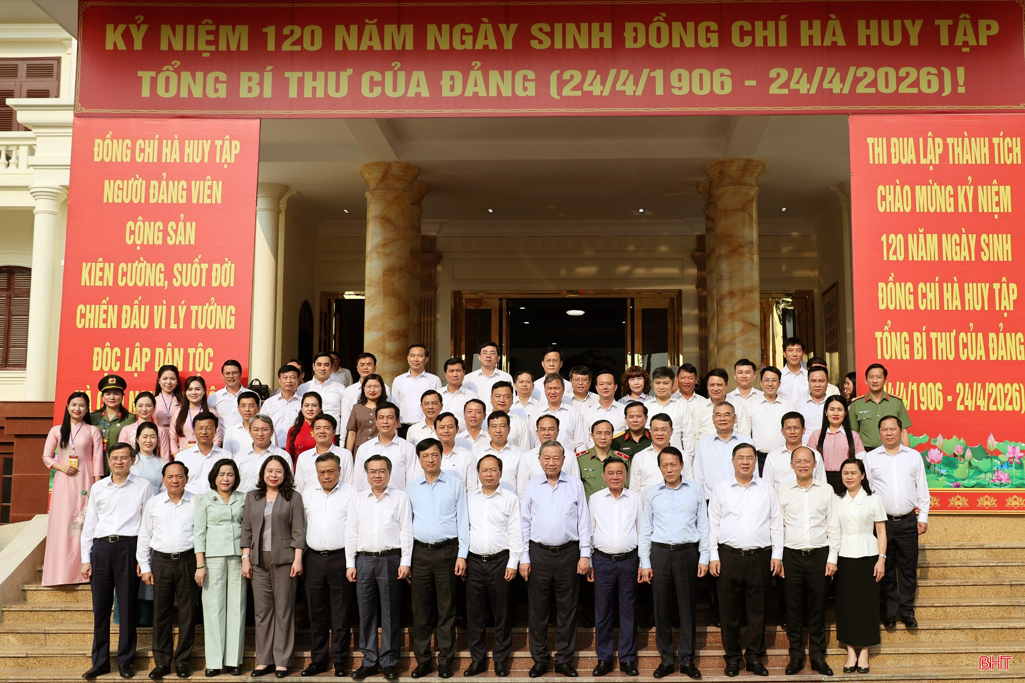 Đồng chí Tô Lâm - Tổng Bí thư, Chủ tịch nước cùng các đồng chí lãnh đạo Đảng, Nhà nước và đại biểu tỉnh Hà Tĩnh chụp ảnh lưu niệm.