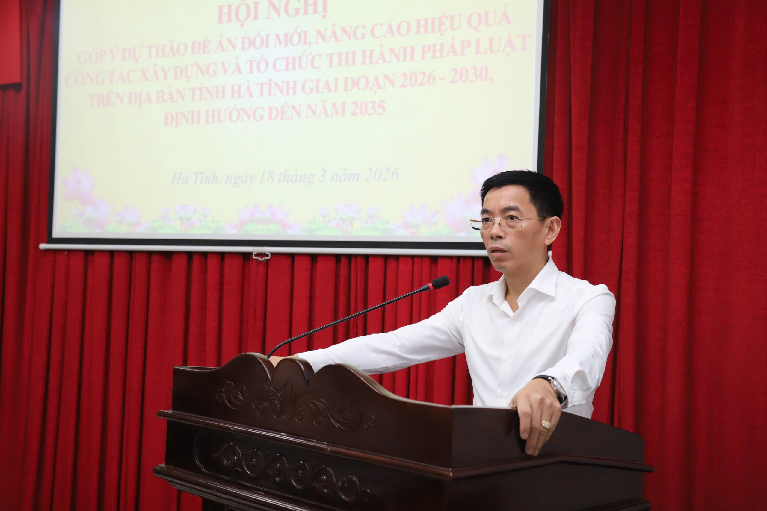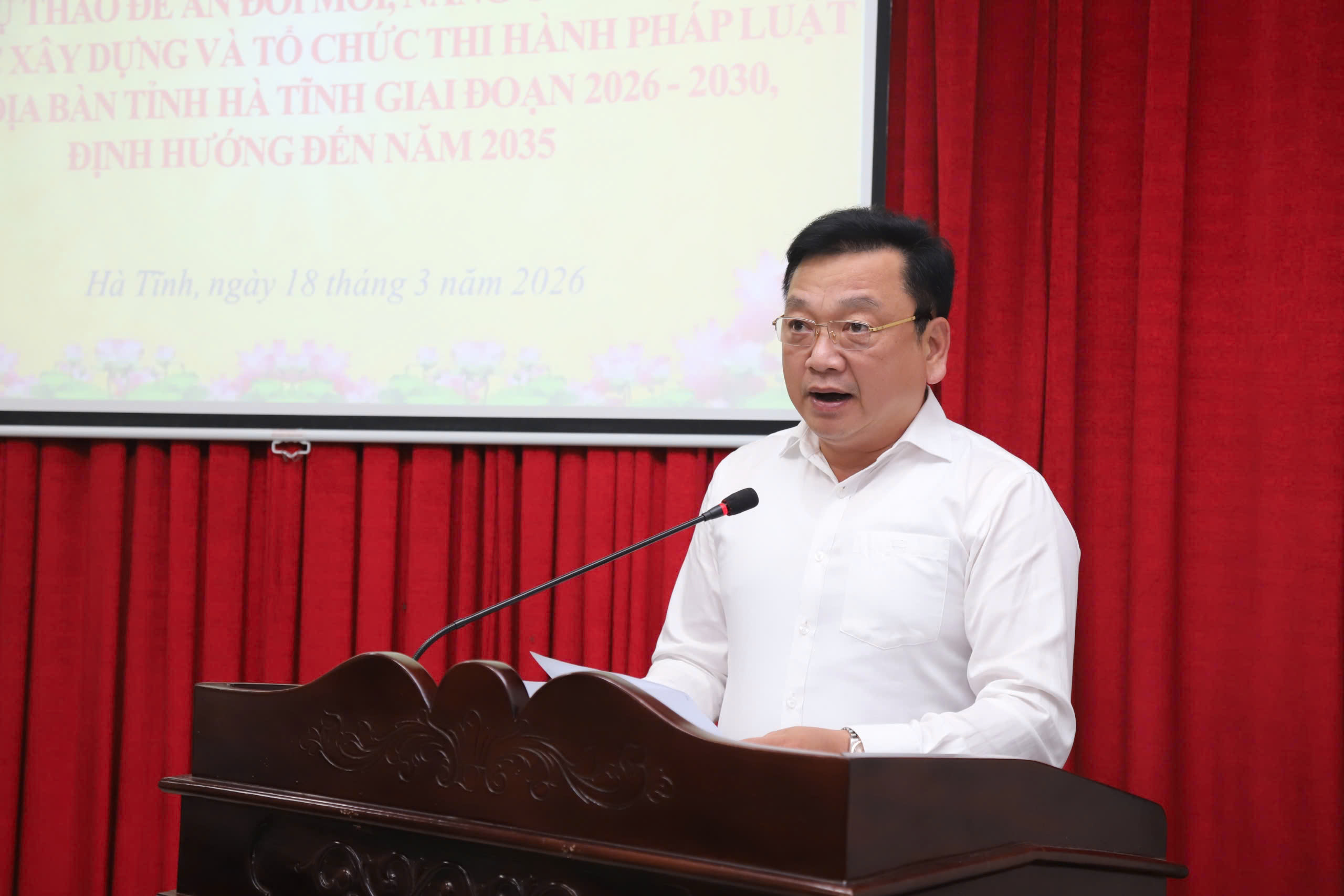 Ngày18/3/2026, UBND tỉnh tổ chức hội nghị lấy ý kiến góp ý đối với dự thảo "Đề án đổi mới, nâng cao hiệu quả công tác xây dựng và tổ chức thi hành pháp luật trên địa bàn tỉnh Hà Tĩnh giai đoạn 2026 - 2030, định hướng đến năm 2035".