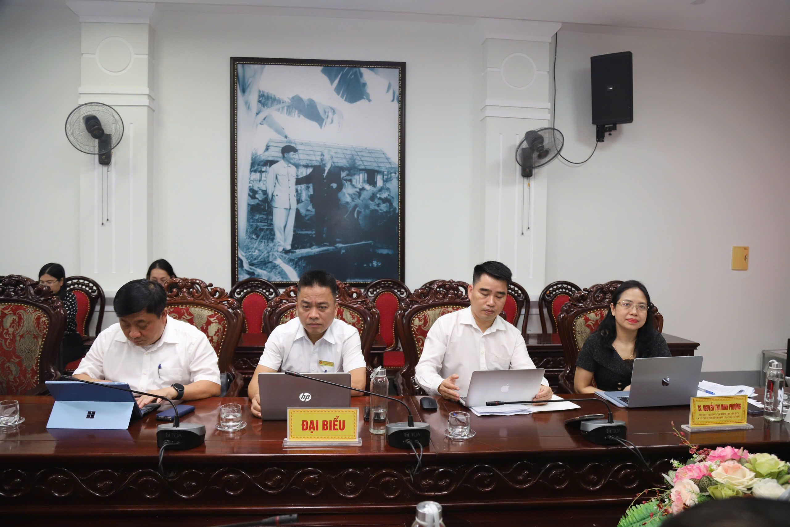 Hội nghị do đồng chí Hồ Huy Thành - Phó Chủ tịch UBND tỉnh và đồng chí Nguyễn Quốc Tuấn - Tỉnh ủy viên, Giám đốc Sở Tư pháp đồng chủ trì. Tham dự Hội nghị có Tiến sĩ Nguyễn Thị Minh Phương - Phó Cục trưởng Cục Kiểm tra văn bản và tổ chức thi hành pháp luật (Bộ Tư pháp); đại diện Đoàn ĐBQH tỉnh, lãnh đạo các Ban HĐND tỉnh; lãnh đạo các sở, ban, ngành cấp tỉnh; các chuyên gia, nhà khoa học đến từ Trường Chính trị Trần Phú Hà Tĩnh, Trường Đại học Hà Tĩnh; lãnh đạo Hội Luật gia tỉnh, Đoàn Luật sư Hà Tĩnh; các thành viên Tổ xây dựng Đề án theo Quyết định số 481/QĐ-UBND ngày 23/02/2026 của UBND tỉnh và lãnh đạo UBND một số xã, phường trên địa bàn tỉnh.